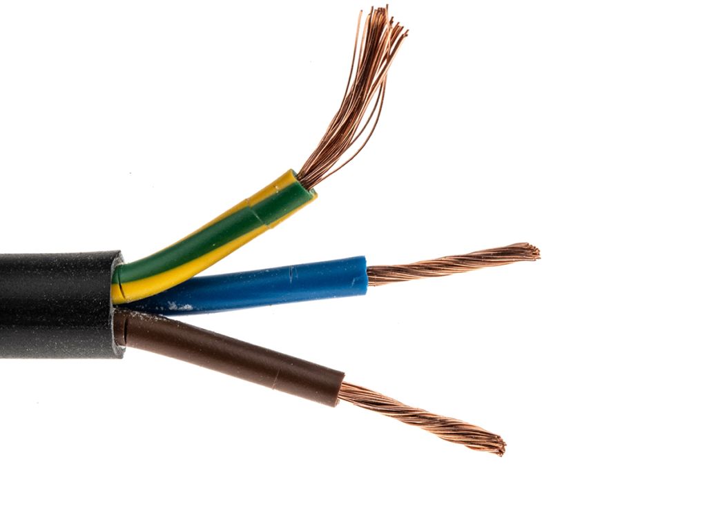 This flexible electrical power cable consists cores made up of fine stranded copper conductors or wires. Each individual core is surrounded by colour coded PVC (Polyvinyl Chloride) insulation for easy identification of the wires. All the cores are then surrounded by a final outer layer of PVC called a sheath or jacket.