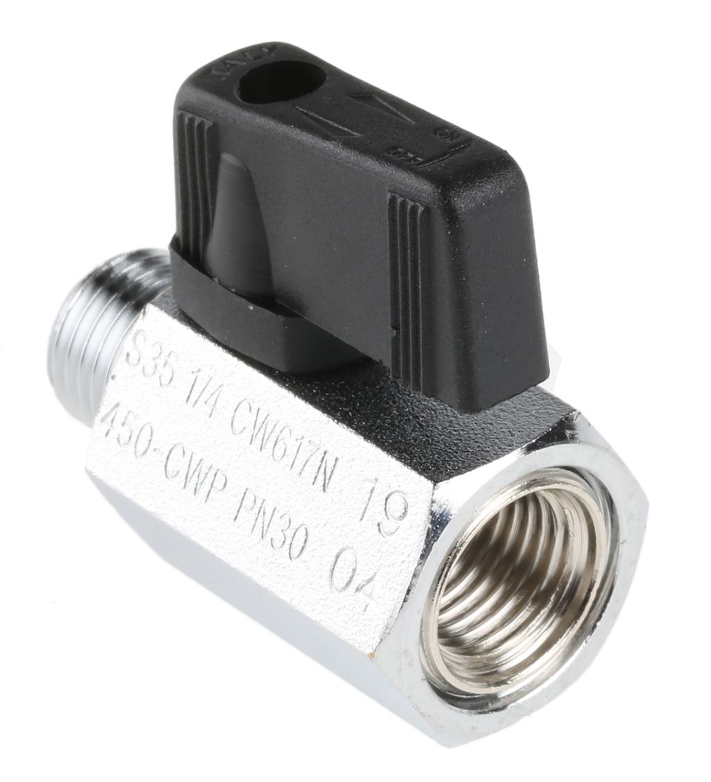 RS PRO Chrome Plated Brass Hydraulic Ball Valve G 1/4