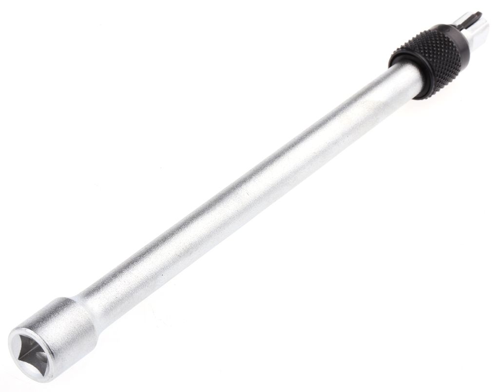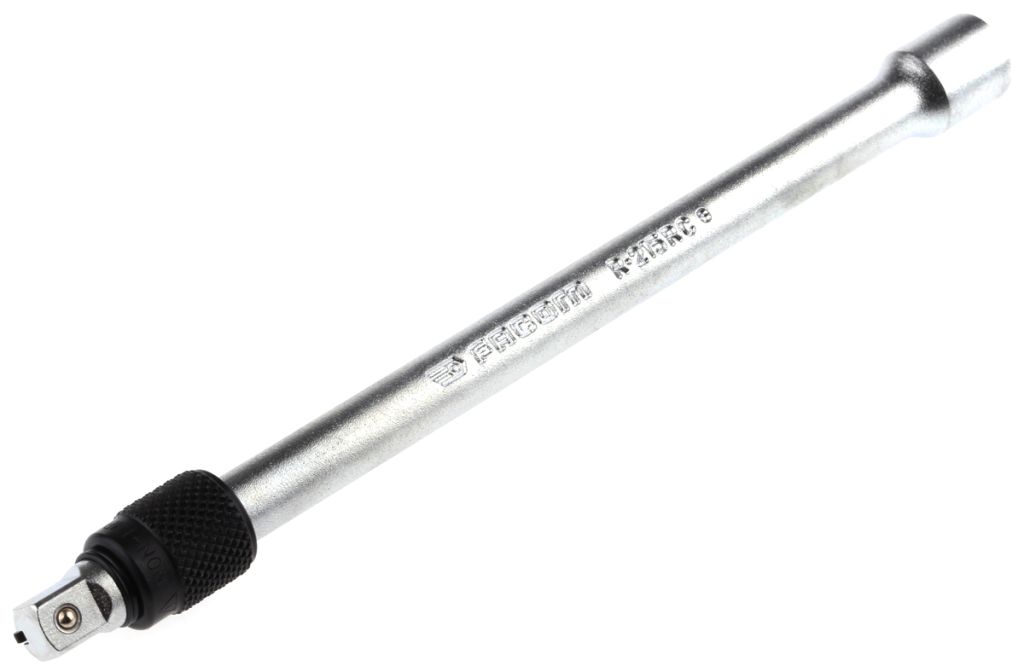 1/4" square drive patented locking extension which prevents possible damage to machinery when approaching or withdrawing the tool by eliminating the risk of losing sockets. Especially useful when working in confined environments. Length 150mm.