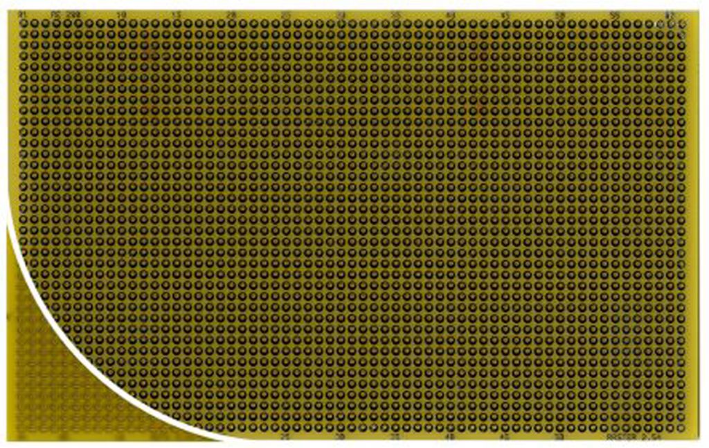 | Product description | Roth Elektronik Single Sided Matrix Board FR4 With 38 x 61 1mm Holes, 2.54 x 2.54mm Pitch, 160 x 100 x 1.5mm |