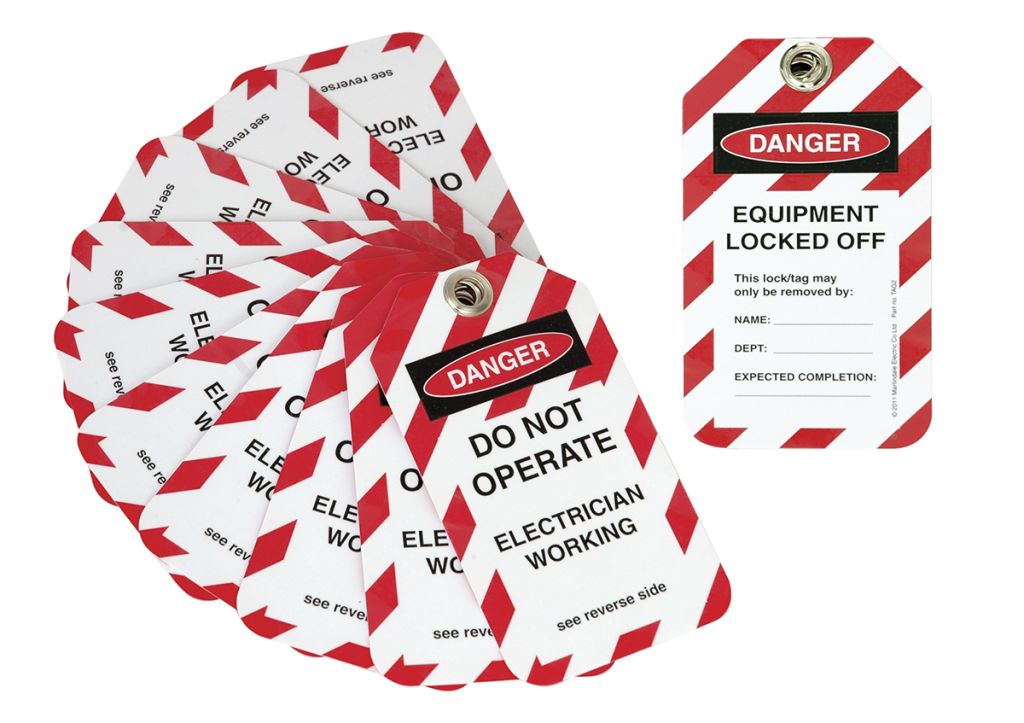 | Product description | 10 x 'Do Not Operate, Electrician Working, Equipment Locked Off' Lockout Tag |