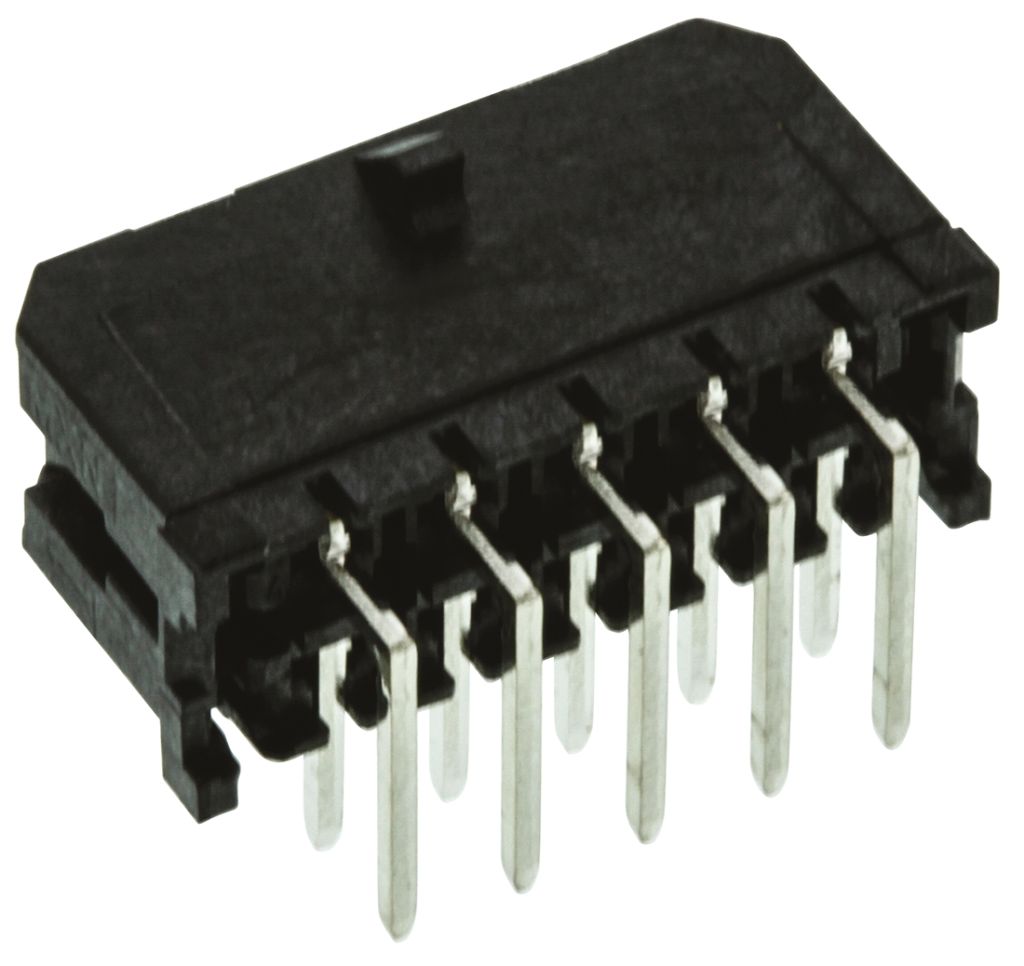Micro-Fit 3.0 3mm pitch wire to board dual row PCB headers which form part of a compact power connector system providing a low to mid-range power distribution solution. With the ability to carry up to 5A of current, Micro-Fit 3.0 connectors have one of the highest current carrying abilities in the smallest footprints available. These Micro-Fit 3.0 PCB headers incorporate positive latching in the form of a locking ramp on the housing for secure mating and to prevent accidental disconnection. The housings are made of high-temperature UL 94V-0 Liquid Crystal Polymer that can withstand temperatures of up to 265°C during the IR reflow soldering process. The through hole mounting versions of these Micro-Fit 3.0 headers are also SMT compatible which means a reduction in process requirements and costs. To secure these Micro-Fit 3.0 headers to the PCB board, snap-in plastic peg PCB locks are incorporated into the connector design. The contacts of these Micro-Fit 3.0 headers are fully isolated within the housings to reduce arcing. Tin or a choice of two thicknesses of gold contact platings are available to keep down costs