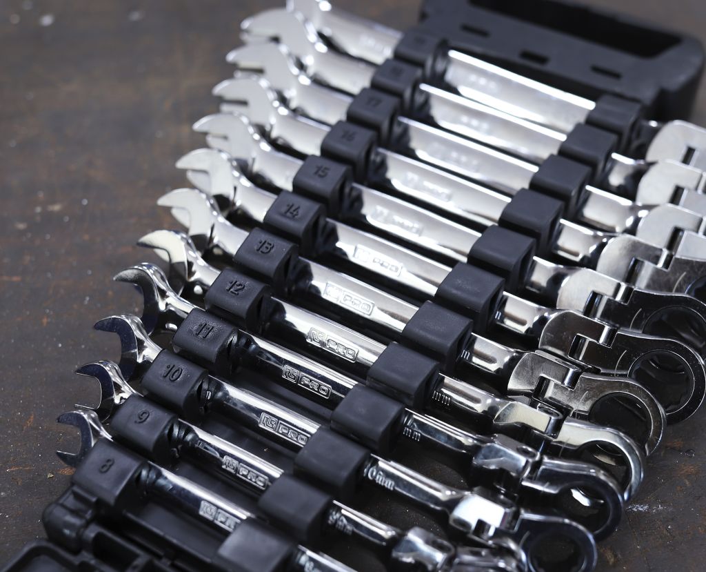 The RS Pro 12 Piece Flex Head Combination Ratchet Spanner Set