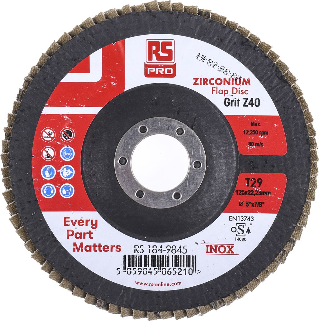 Product description RS PRO Zirconium Dioxide Flap Disc, 125mm, P40 Grit