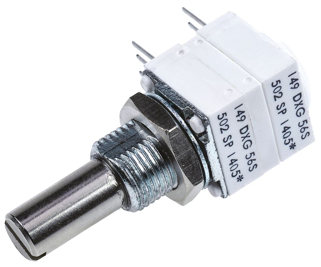 Vishay 5kΩ Rotary Potentiometer 2-Gang, Panel Mount (Through Hole), 14920F0GJSX13502KA