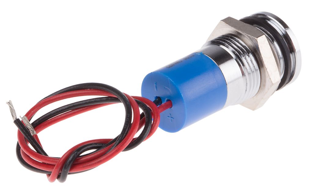 | Product description | RS PRO Blue Indicator, 220V ac, 14mm Mounting Hole Size, Lead Wires Termination, IP67 |