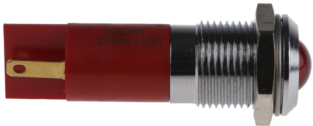 | Product description | RS PRO Red Flashing LED Indicator, 24V dc, 14mm Mounting Hole Size, Solder Tab Termination |