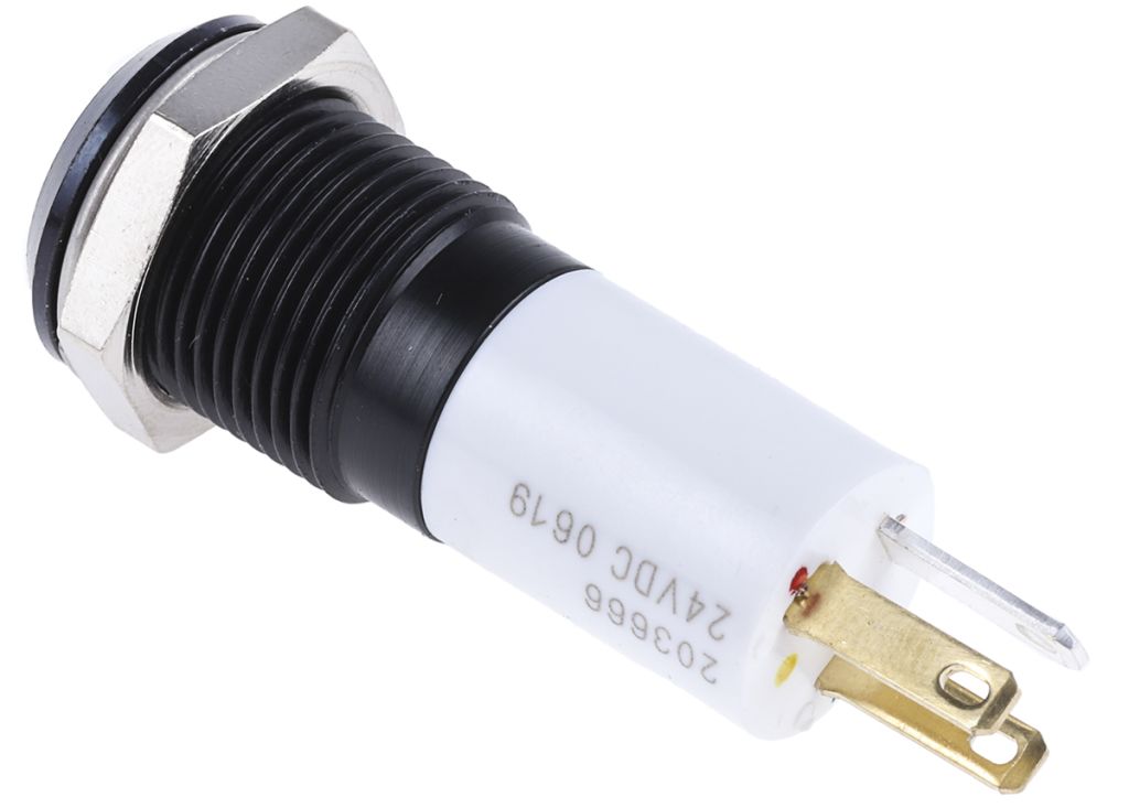 | Product description | RS PRO Indicator, 24V dc, 14mm Mounting Hole Size, Solder Tab Termination |