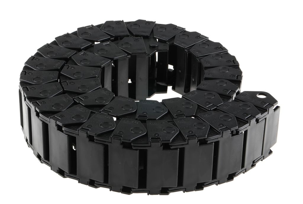 High quality chains for such applications as guiding cables, fibre optics, and hoses in many industrial fields, such as robotics, pick and place, moving machinery etc.