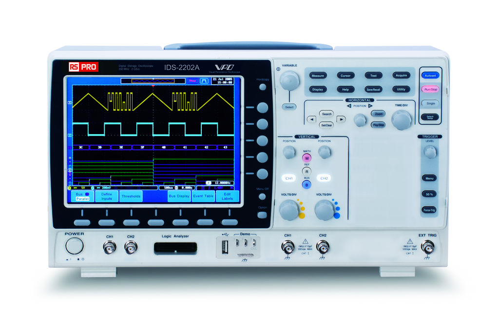 | Product description | RS PRO IDS2202A Bench Digital Storage Oscilloscope, 200MHz, 2 Channels |