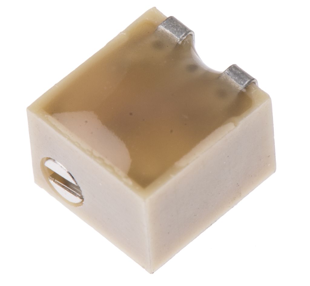 Bourns Standard 3224W Series top adjust SMD Trimpot® trimming potentiometer with a power rating @ 70 °C of 0.25W. The 3224W series cermet trimmer features a flush adjustment screw, a pick and place centring design for automated placement compatibility and is Sealed to withstand standard board wash processing.