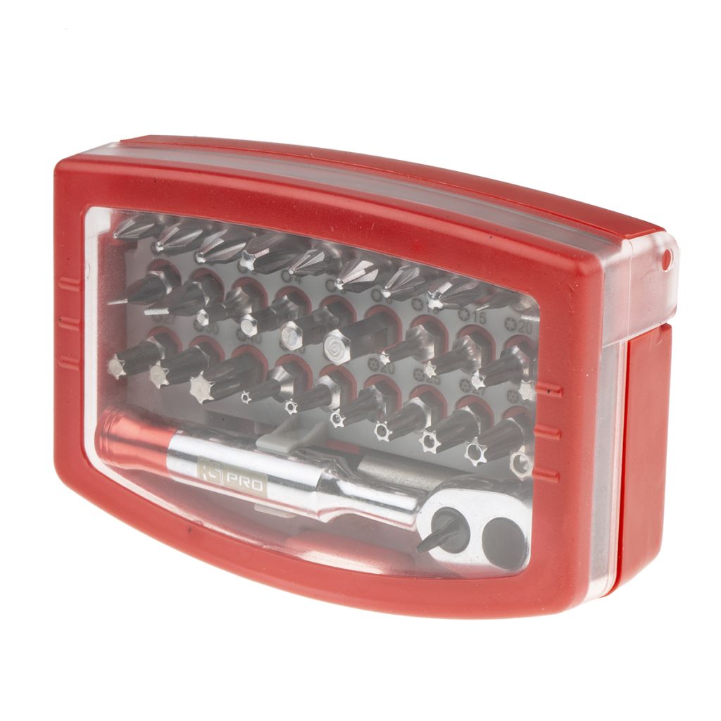 | Product description | RS PRO Driver Bit Set 32 Pieces, Hexagon, Phillips, Pozidriv, Slotted, Tamperproof Torx |