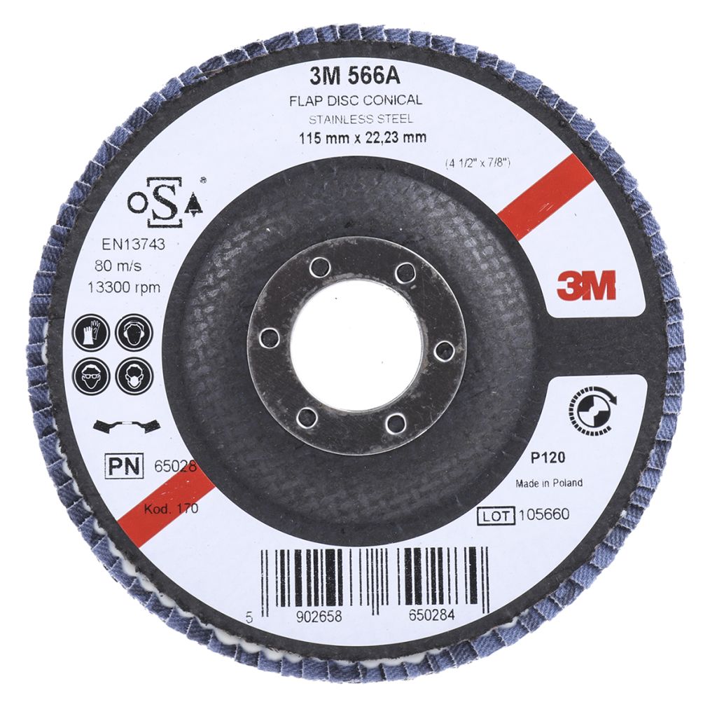 3M 566A Zirconia Aluminium Flap Disc, 115mm, Fine Grade, P120 Grit, PN65026
