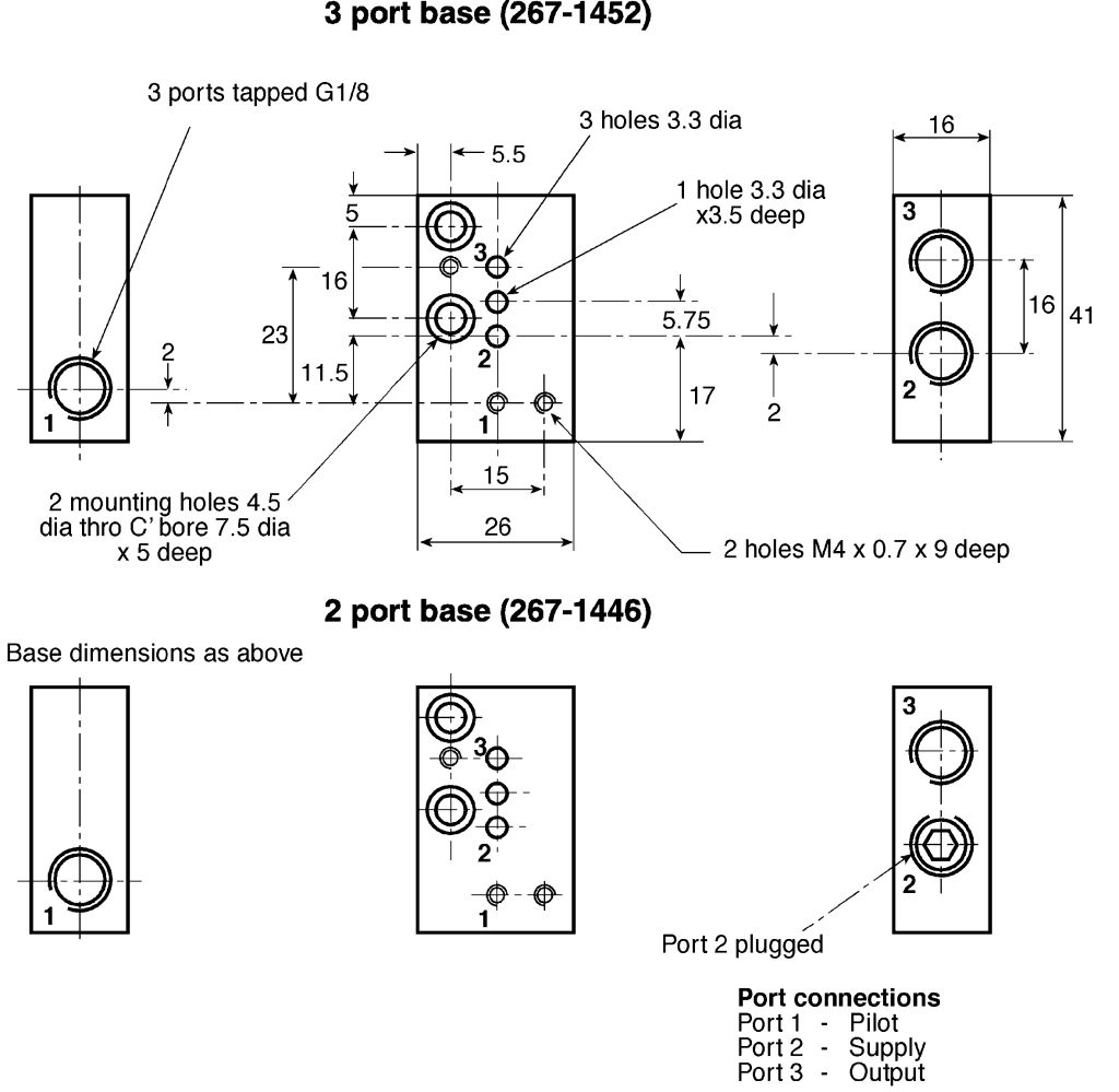 All logic units require mounting on a separate 2 or 3 port base, available separately. Logic units have an input (green) and output (red) pressure indicator to show the state of the respective signal. Units are supplied with two captive screws for mounting on all types of base and sealing o-rings are in the bottom of each unit.