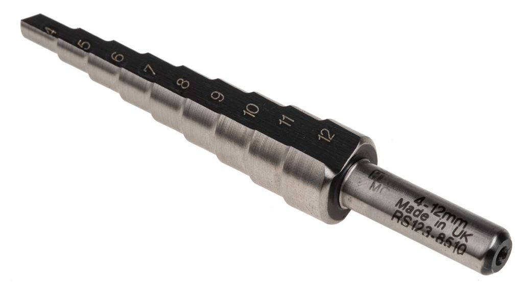 A step drill bit is an accessory that gets overlooked, the working principle is so simple you can drill multiple size holes without changing the bit and achieve a nice clean finish every time.