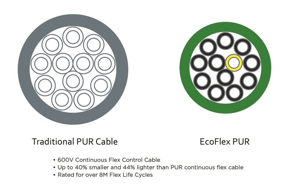Unlike PVC, cables containing PUR and mPPE are halogen-free, contain no phthalates and are 100% recyclable and deemed to be environmentally friendly.