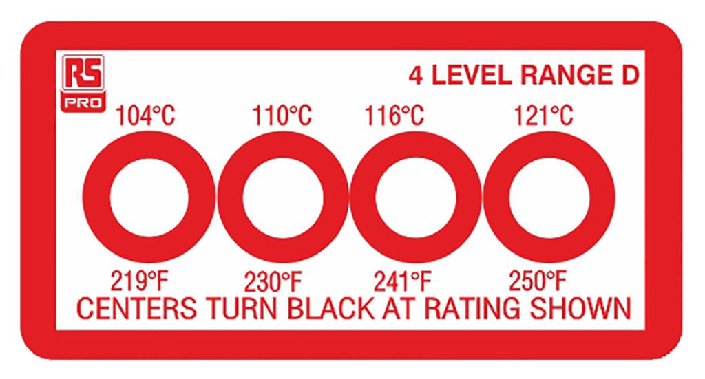 RS PRO Non-Reversible Temperature Sensitive Label, 104°C to 121°C, 4 Levels