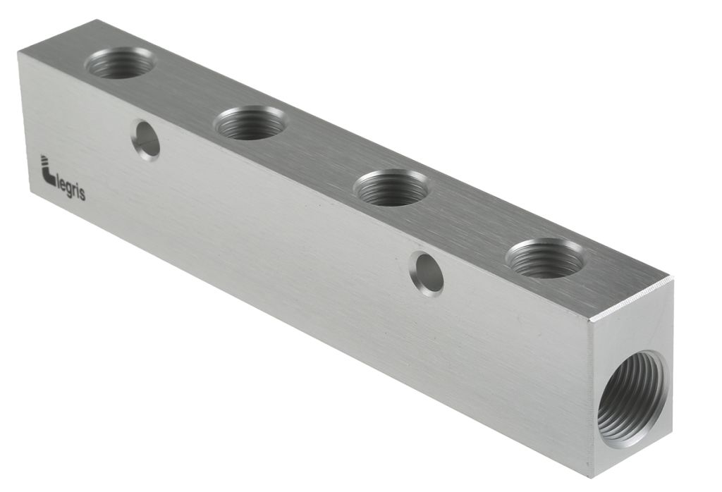 Single sided manifolds to be used for the distribution of compressed air. A wide range of threads and outlets are available.