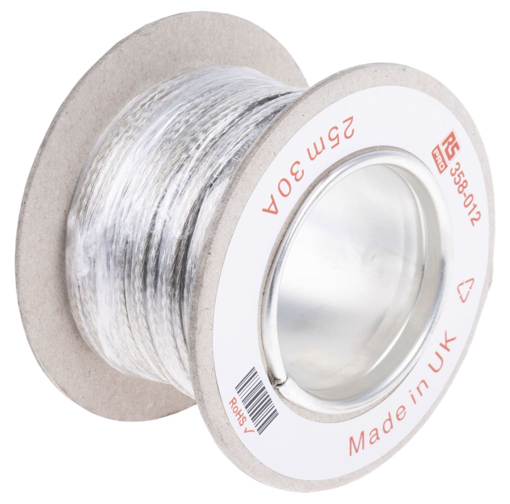 RS PRO Braided Wire 30 A, 4 x 0.8 mm, 25m BS4109