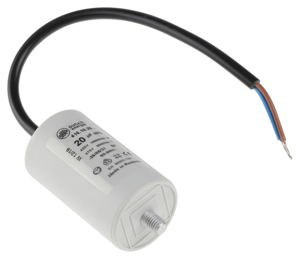 | Product description | Ducati Energia 4.16.10 Polypropylene Film Capacitor, 400 → 500V ac, ±5%, 20μF, Stud Mount |