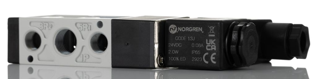RS PRO Pneumatic Solenoid Valve – Solenoid/Spring G 1/4 V51 Series 24V dc
