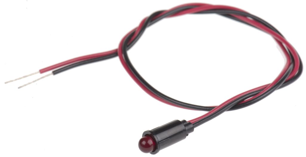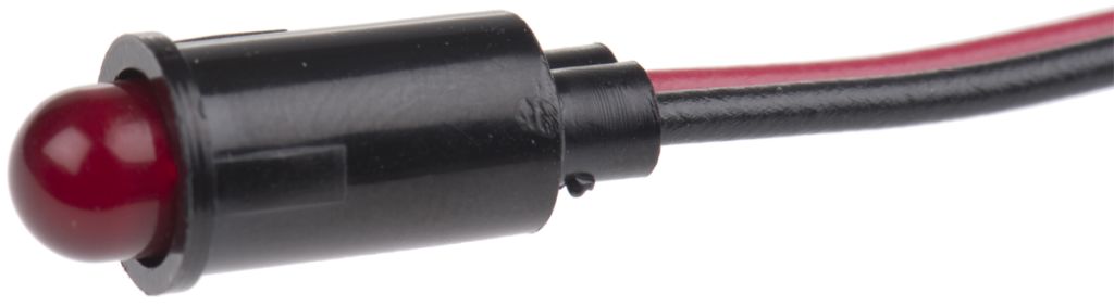 | Product description | Dialight Red Indicator, 5V dc, 6.4mm Mounting Hole Size, Lead Wires Termination |