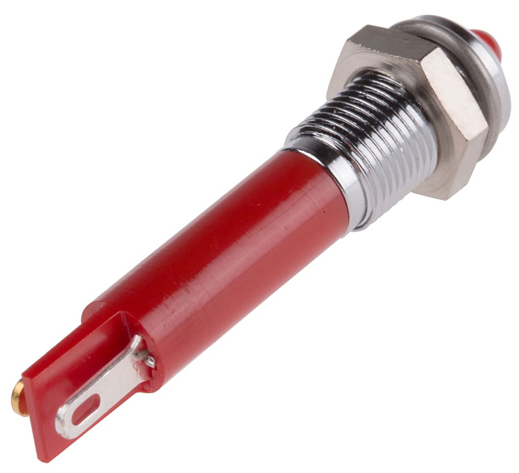 | Product description | RS PRO Red Indicator, 12V dc, 6mm Mounting Hole Size, Solder Tab Termination |