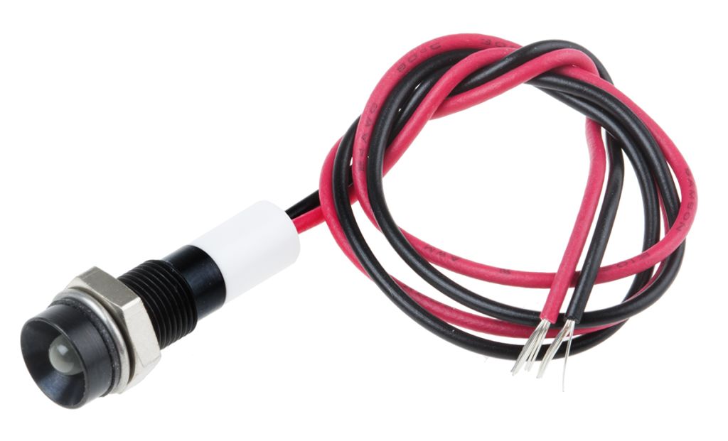 | Product description | RS PRO White Indicator, 12V dc, 6mm Mounting Hole Size, Lead Wires Termination, IP67 |
