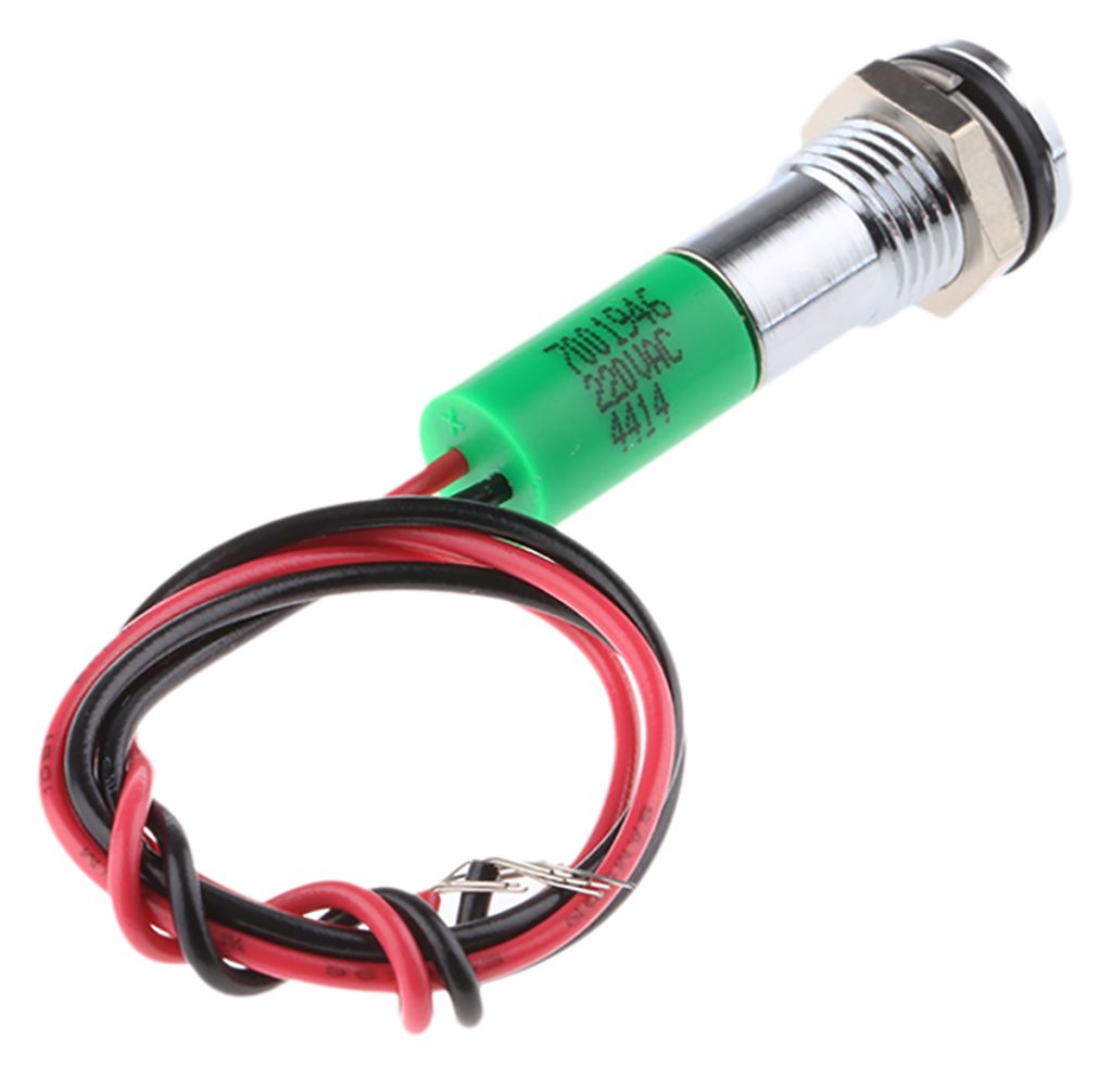 | Product description | RS PRO Green Indicator, 220V ac, 8mm Mounting Hole Size, Lead Wires Termination, IP67 |