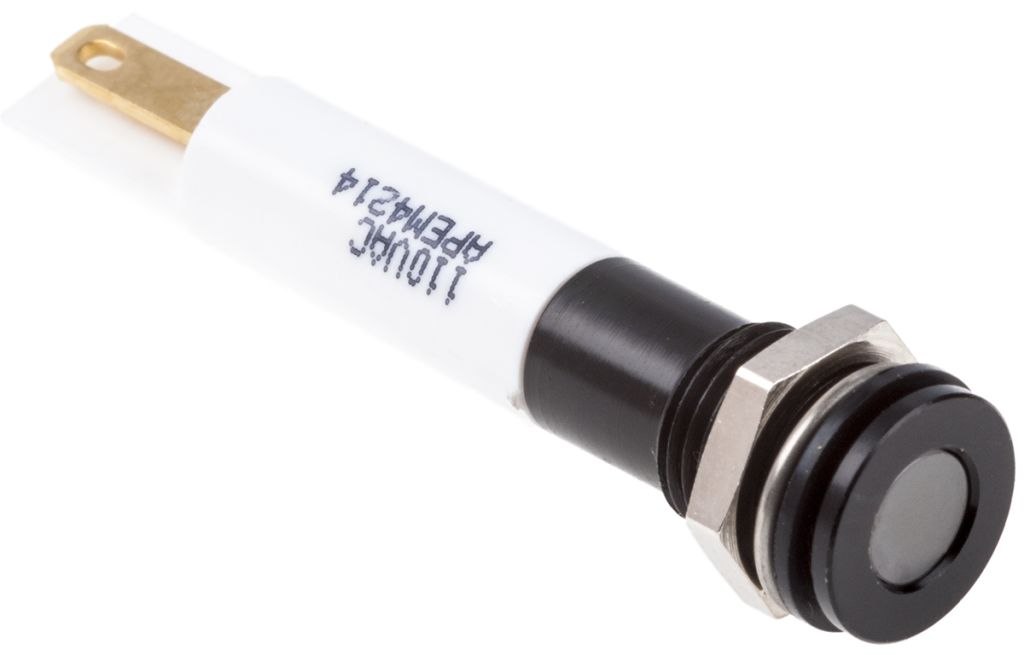 RS 8mm hyper bright panel mount LED indicators with 5mm coloured diffused epoxy lens are available in bright or black chrome bezel finishes. Bezel style options: prominent, recessed and flush. Applications include medical, telecommunications, engineering, transport systems, special vehicles and agricultural vehicles.