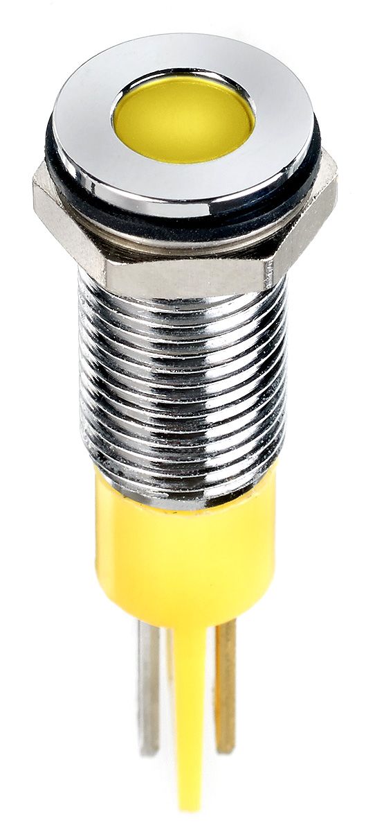 RS PRO Yellow Indicator, 24V dc, 8mm Mounting Hole Size, Faston, Solder Lug Termination, IP67
