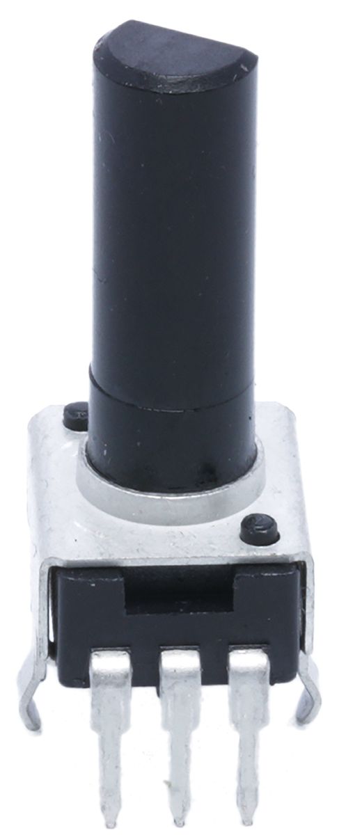 PTV09 series 9mm rotary linear potentiometers with a carbon element, insulated shaft and centre detent option (stock numbers 737-7821, 827-4990, 827-5022 and 737-7830). These PTV09 rotary linear potentiometers are PCB horizontal mounting apart from stock number 737-7818 which is vertical/side mounting. For further details please refer to datasheet.
