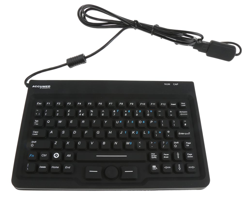 ACCURATUS AccuMed Mini - USB mini sealed IP67 antibacterial medical keyboard with mousepad.