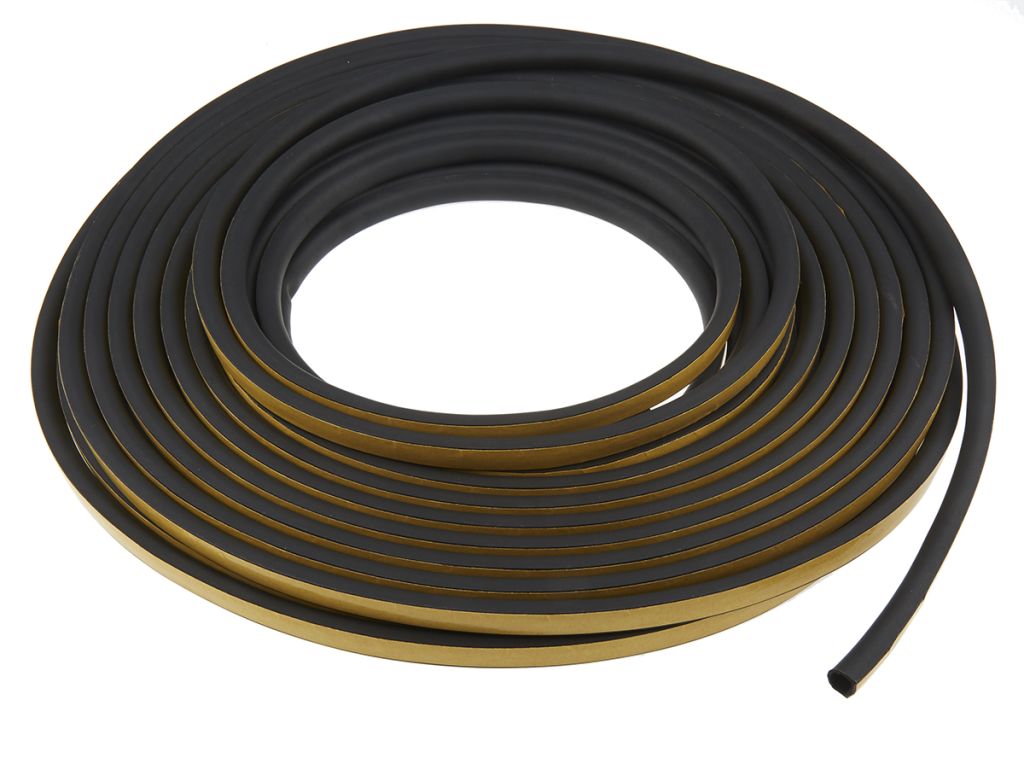 From RS Pro a high-quality extruded EPDM (ethylene propylene diene monomer) sponge rubber sealing strip designed for use as door seal or window seal. When compressed the air chamber that is contained in the seal profile can fill large openings even if they are uneven. This EPDM rubber door seal strip has a self-adhesive strip on the back making it easy to apply.