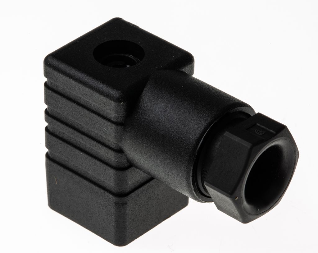 A comprehensive range of connectors and plug bases typically for use with solenoid valves on pneumatic and hydraulic equipment. The inner connector can be rotated through 90° increments so the gland can be positioned in all four directions. Housing material is glass-filled nylon making them impact resistant.
