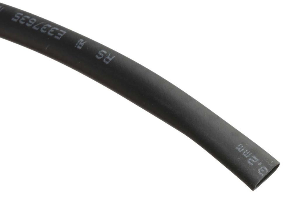 RS PRO Heat Shrink Tubing, Black 3.2mm Sleeve Dia. x 10m Length 2:1 Ratio