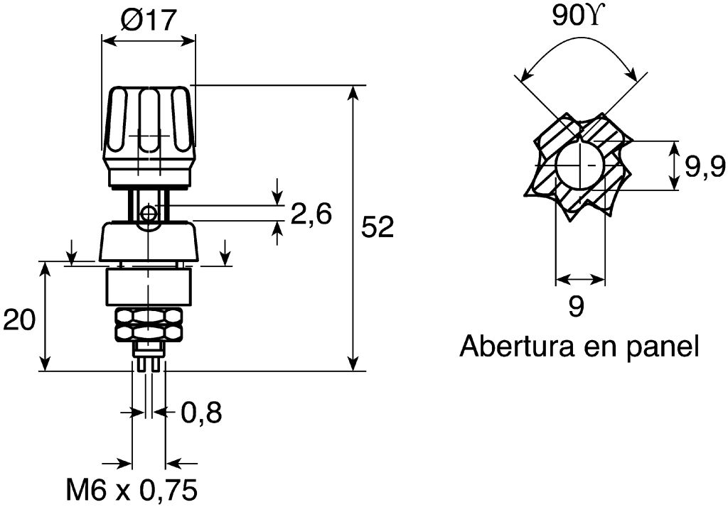 | Product description | Hirschmann Test & Measurement 4mm Black Terminal Post, 60V dc, 63A, M6 x 0.75 Thread |