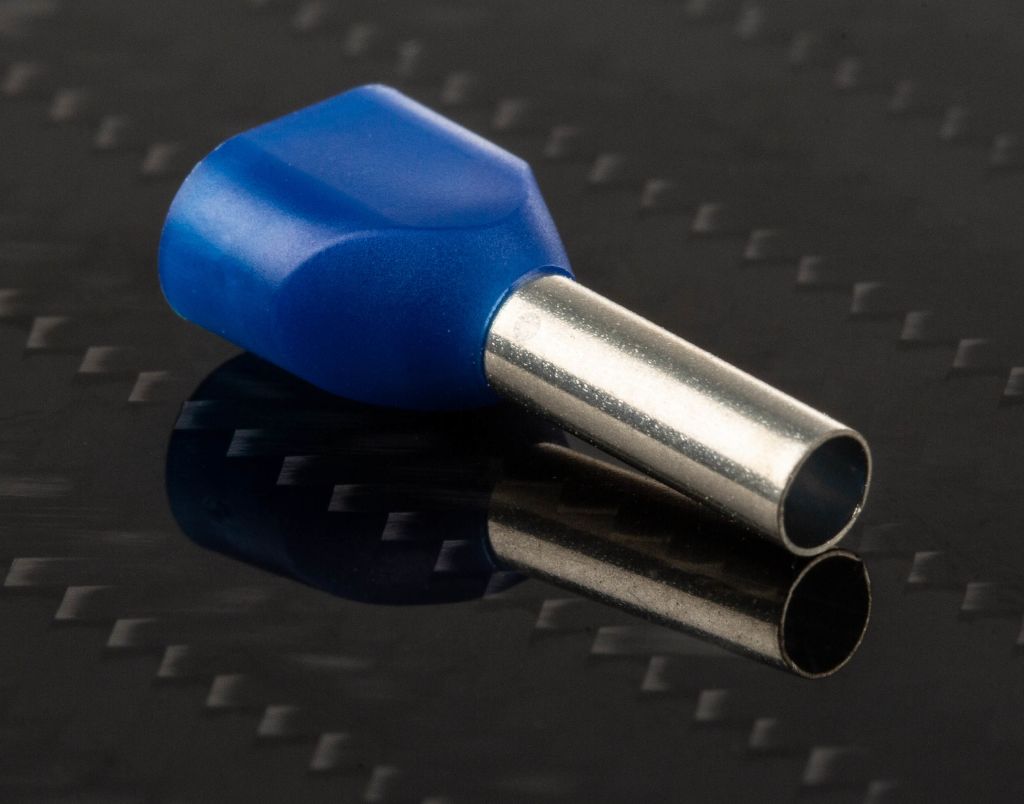 A bootlace ferrule is a metal tube or ferrule with a moulded colour coded insulating collar made from nylon. The ferrule is slipped over the end of a multi-stranded wire, crimped and then inserted into a screw or spring clamp connection.