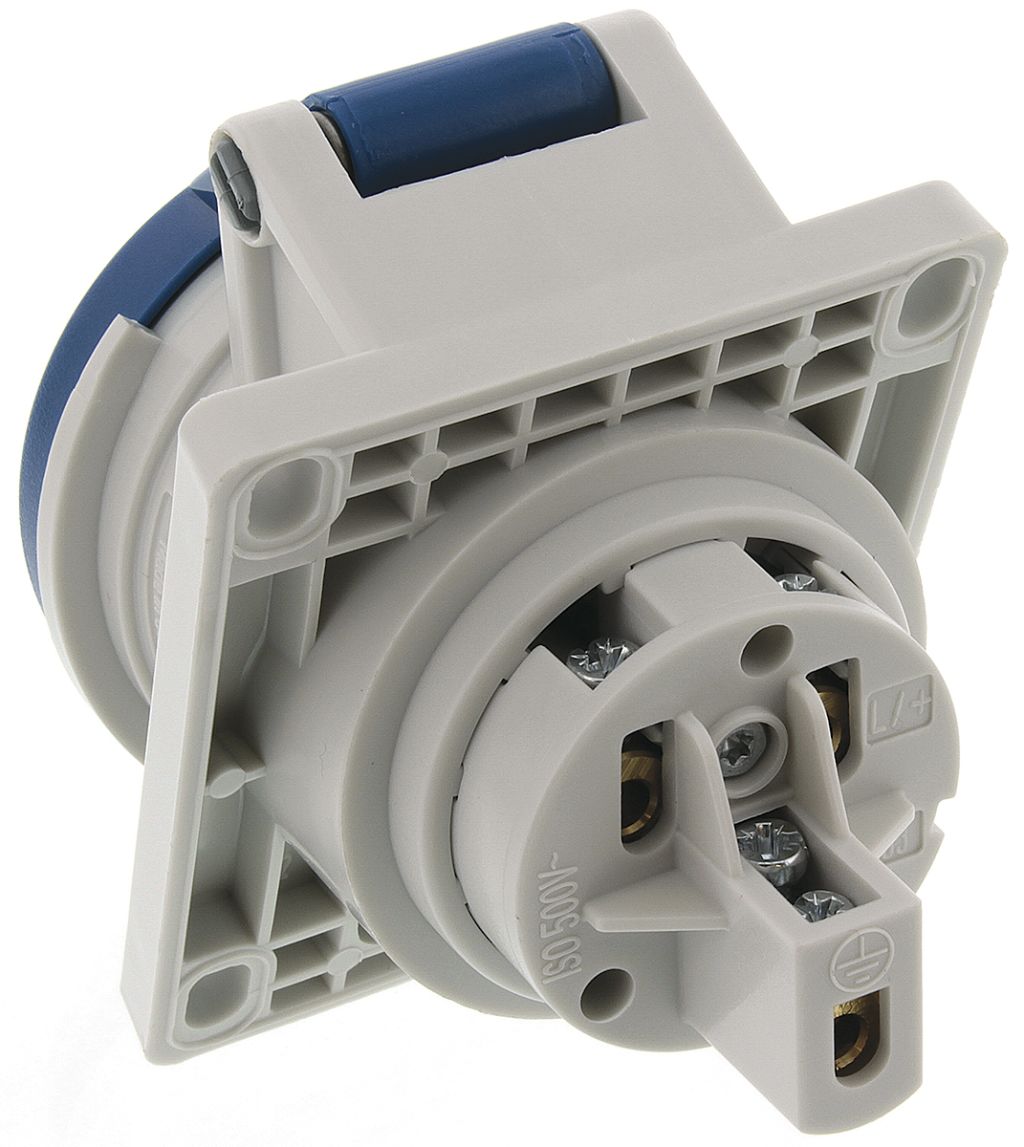 | Product description | MENNEKES IP44 Blue Panel Mount 3P Angled Industrial Power Socket, Rated At 16A, 230.0 V |