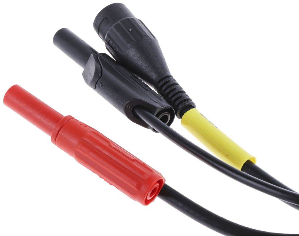 A fully insulated touch protected BNC to 4mm shrouded plugs adaptor lead. Suitable for use with fully insulated touch-proof female BNC (Stock No. 225-5280), and oscilloscopes with insulated BNC inputs. Rating 600V CATII to EN 61010-031: 2002.