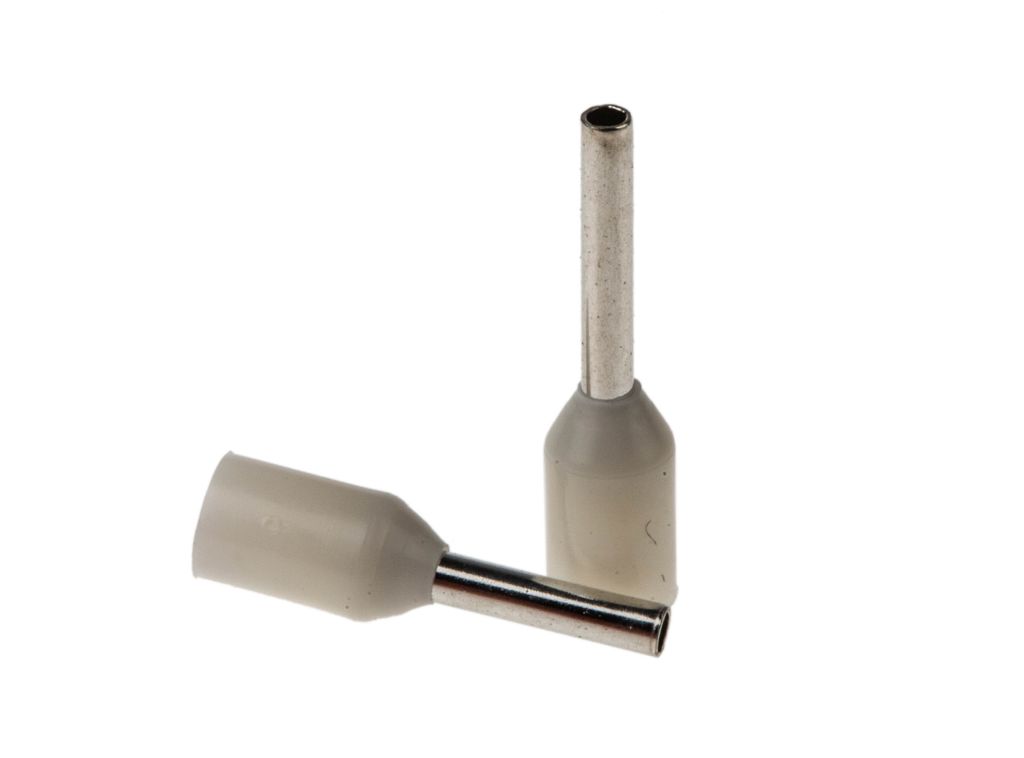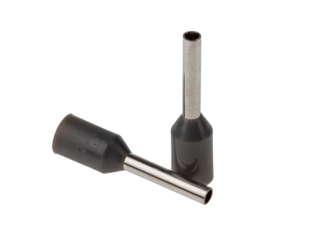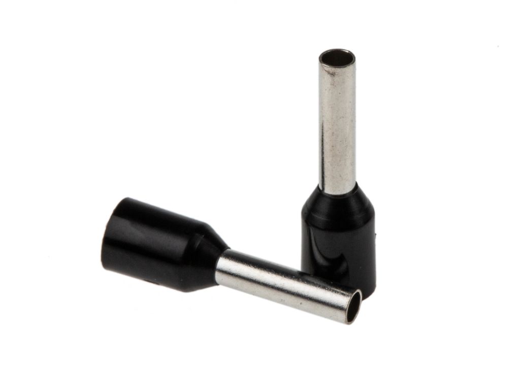 A bootlace ferrule is a metal tube or ferrule with a moulded colour coded insulating collar made from plastic. The ferrule is slipped over the end of a multi-stranded wire or cable, crimped and then inserted into a screw or spring clamp connection.