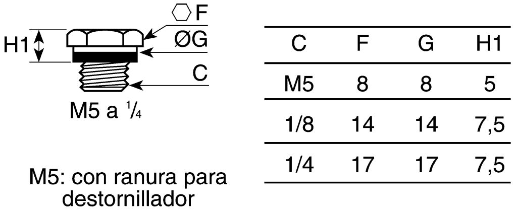 A brass threaded blanking plug for blanking off M5 and BSP ports. Temperature range -40 to +100°C.