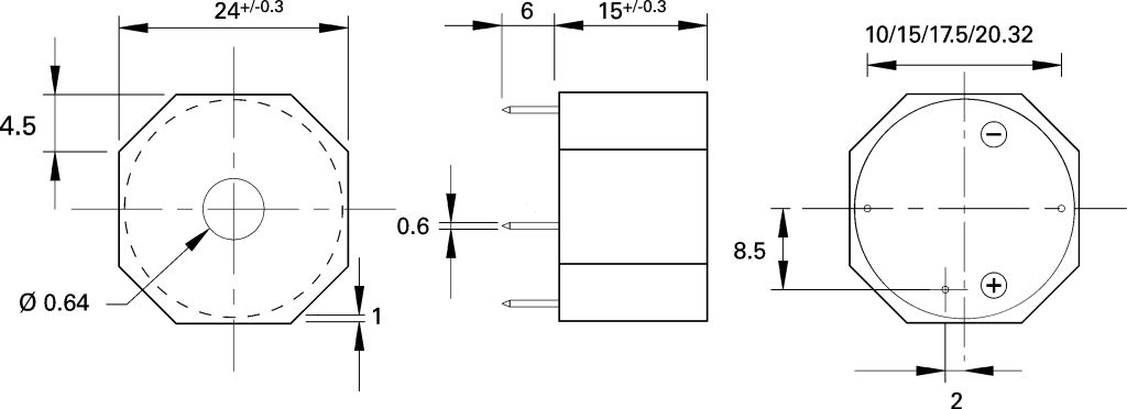 | Product description | Sonitron 98dB, Through Hole Continuous Internal, Piezo Buzzer, 1.5V dc up to 15V dc |