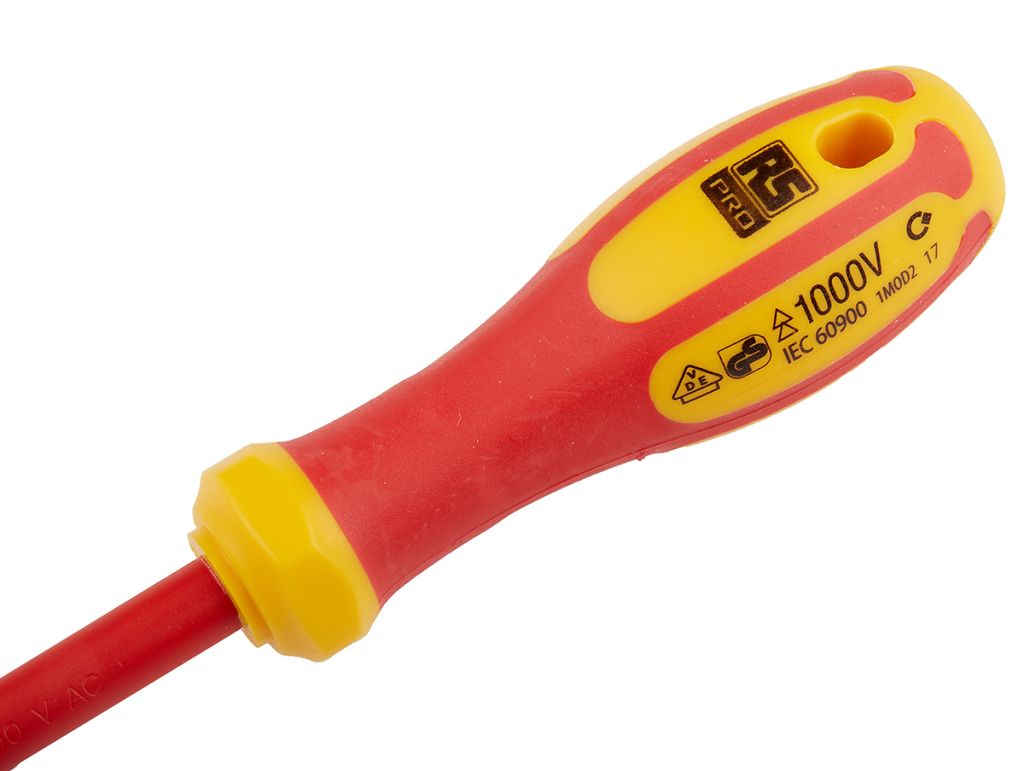 RS Pro Insulated Pozidriv/Slotted. Insulated screwdrivers offer maximum comfort and grip, suitable for safe working on live equipment at up to 1000 V ac or 1500 V dc