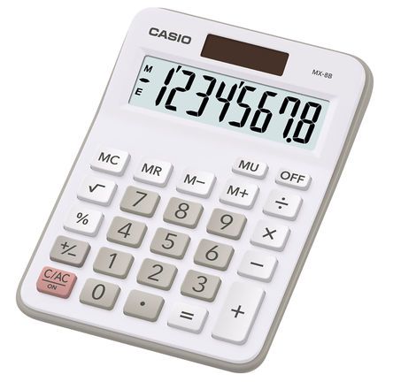 The Casio MX-8S-WE-S-UC basic desk model has a clear display And easy to use. Dual powered And performs the major basic functions: addition (extra large key), subtraction, multiplication And division And percentage