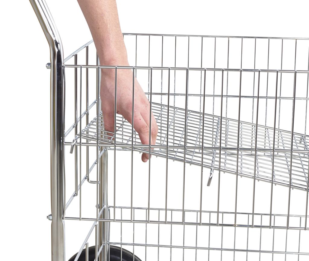 This chrome plated wire trolley is ideal for delivery post in offices and other work places.
