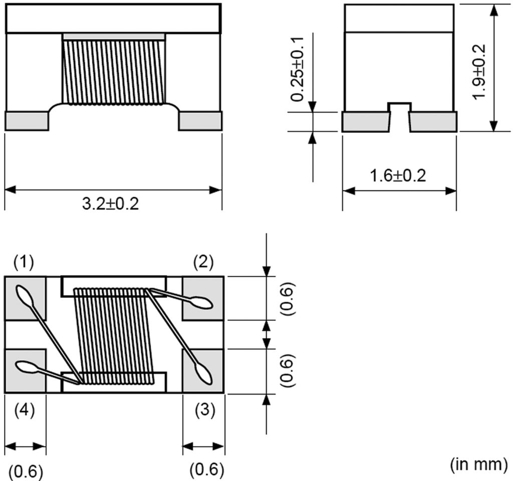 Dimensions 3.2 x 1.6 x 1.9 mm
