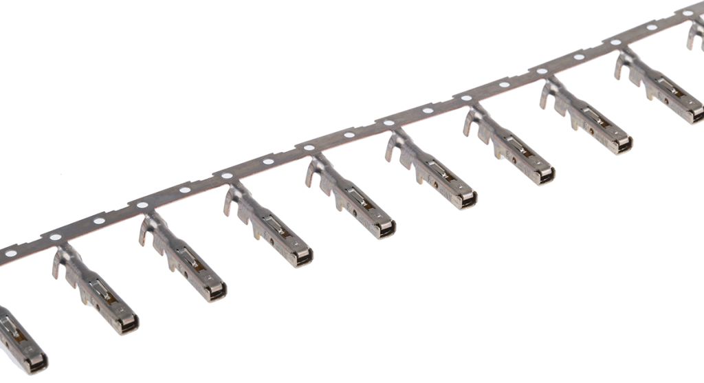 DYNAMIC D-3000 series tab and receptacle contacts for use in DYNAMIC D-3000 series connector housings. These D-3000 series of contacts can be used in all housings in the same series and can conduct a high current of up to 15 A. When inserted into the housing a lance in the housing secures the contact into place and produces an audible click to confirm secure locking. The contact can also be easily removed using the correct tooling. The DYNAMIC D-3000 series terminals have a twist resistant box type receptacle and tab construction with 3 points of contact for increased electrical reliability. Two types of contact pressure are available for different applications; standard pressure for withstanding high numbers of insertions and withdrawals and high pressure for high vibration environments. These DYNAMIC D-3000 series crimp contacts are available with tin or gold plating to meet a range of applications.