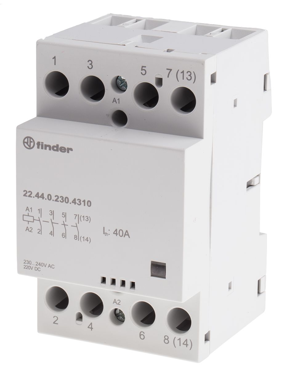 | Product description | Finder, 240V ac Coil Non-Latching Relay 4NO, 40A Switching Current DIN Rail, 4 Pole, 22.44.0.230.4310 |