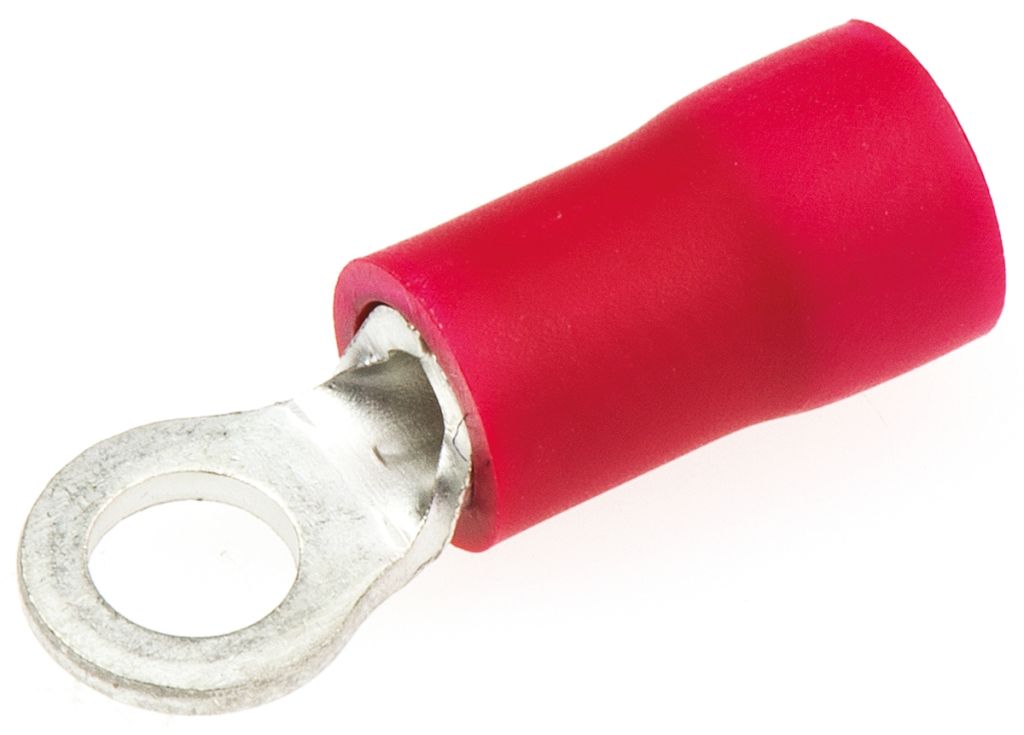 A range of insulated crimp ring terminals for use with a variety of wire and stud sizes.